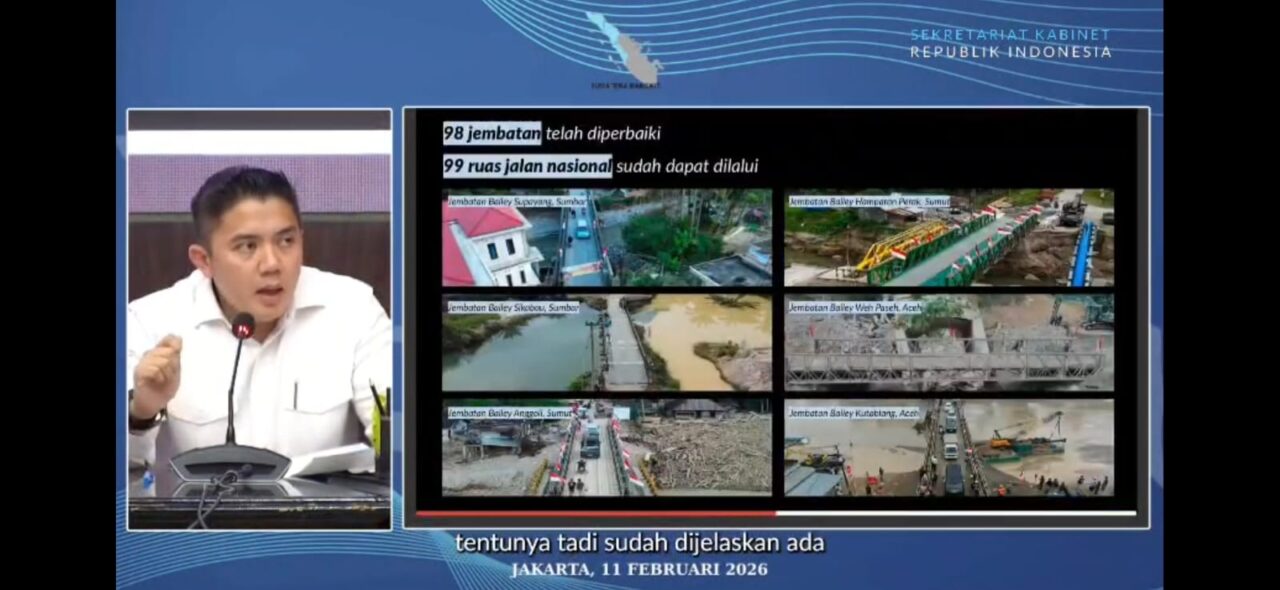 PelitaTangerang.com, Jakarta – Sekretaris Kabinet (Seskab) Teddy Indra Wijaya menegaskan bahwa Presiden Prabowo Subianto terus memantau secara langsung perkembangan rehabilitasi dan rekonstruksi pascabencana di wilayah Sumatra. Hal tersebut disampaikan dalam konferensi pers Satuan Tugas Rehabilitasi dan Rekonstruksi Pemulihan Bencana Sumatra di Jakarta pada Rabu, 11 Februari 2026.
