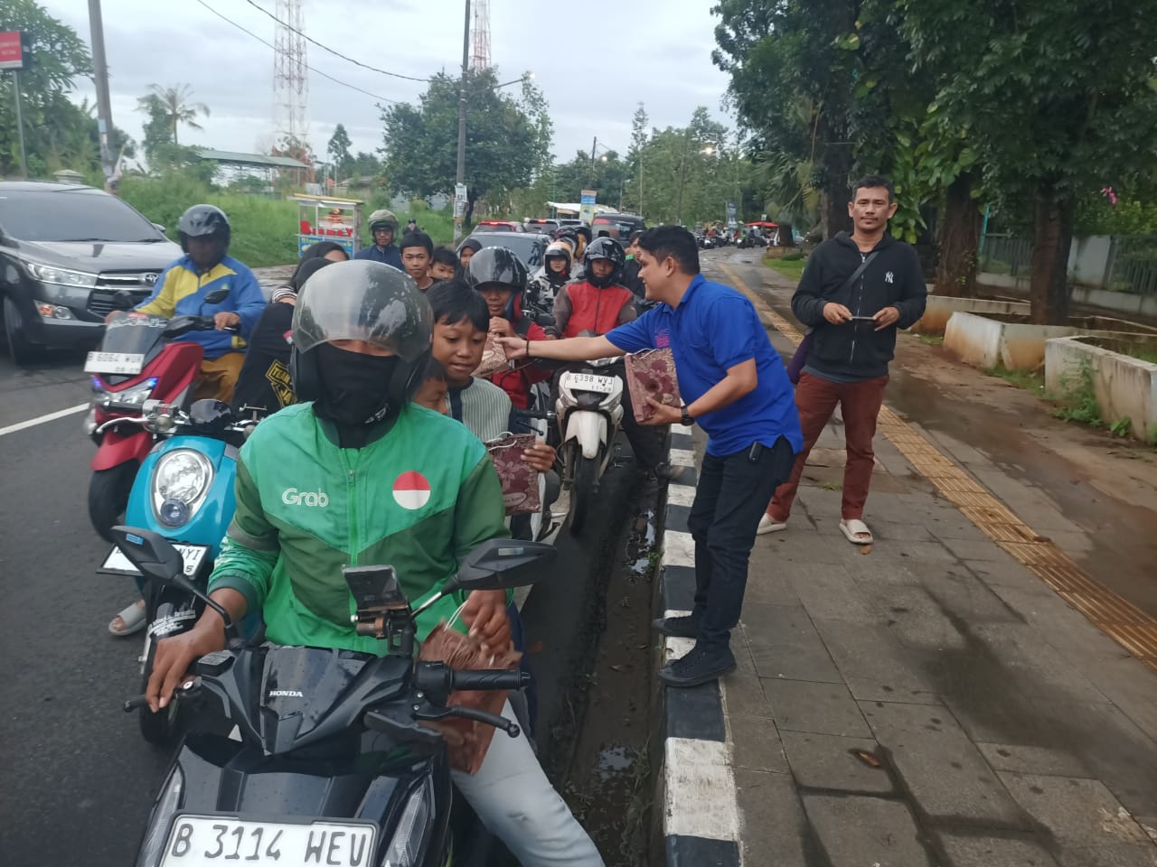Selepas hujan, kegiatan sosial yang menjadi agenda rutin SMSI Tangsel setiap Ramadan ini menyasar masyarakat yang masih berada di perjalanan menjelang waktu berbuka puasa. Genap seratus paket takjil dibagikan kepada pengendara, ojek online, hingga warga yang melintas di sekitar kawasan Balaikota.